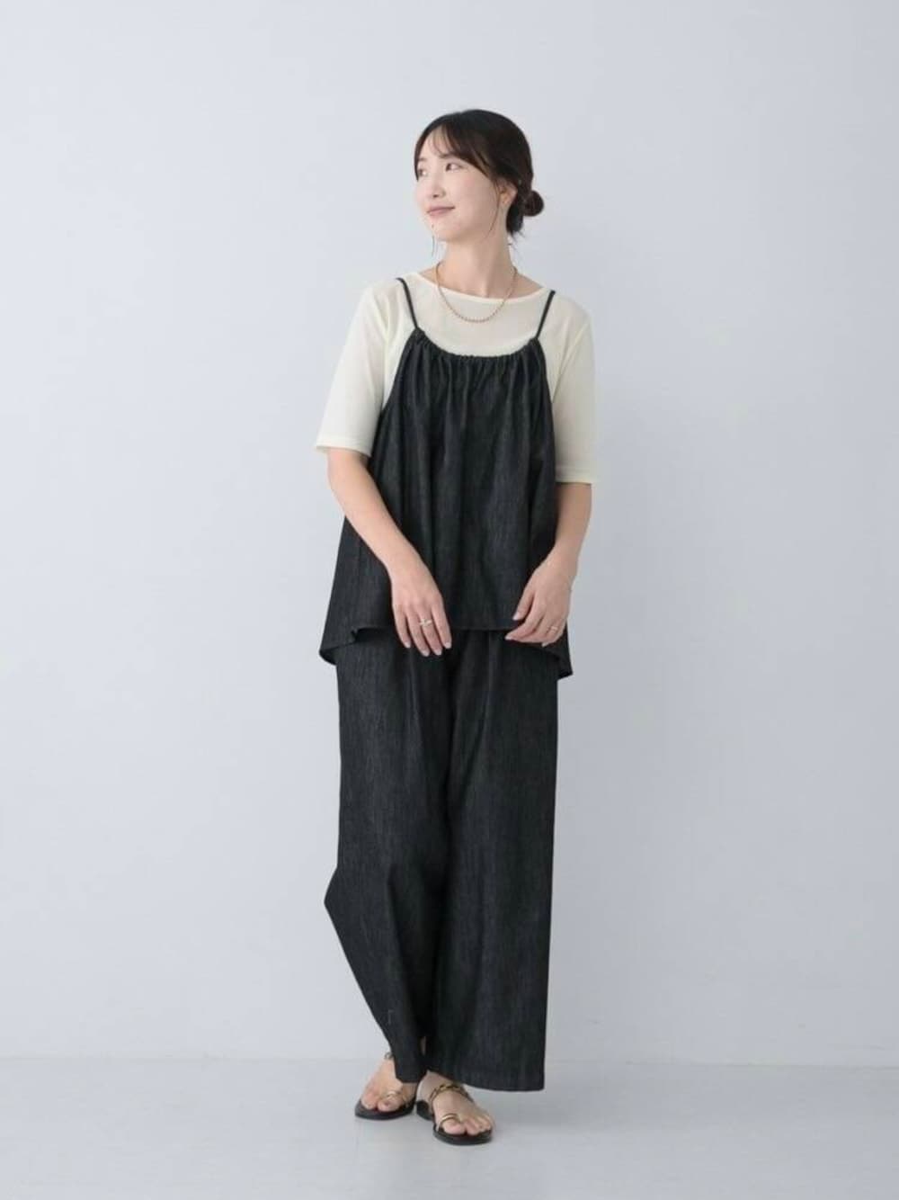 着用コーデ:33件今の時期におすすめのデニムセットアップ。 今回はより大人っぽくお召しいただけるブラックを着てみました! インナー次第で夏から秋まで着られるのが嬉しいポイント! ボーダーでカジュアルにしたり、 レースやシアーで女性らしさをプラスしたり、、 シンプルなTシャツでも洒落見えが叶うアイテムです◎