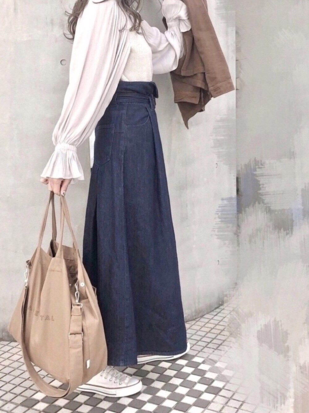 グレージュのボリューム袖トップスにデニムスカート! 少し前に投稿したこのコーデ。 前回はアウターがグレンチェックのジャケットで バッグは黒いレザーの巾着でした。 (小窓に貼っておきます🔎) 👆🏻こちらが完全ブルベさん向けだったので 今回はジャケットをブラウンに、 バッグをベージュに変えてイエベさん向けに🍂☕️✨ トップス、ボトム、シューズ、 ぜんぶ同じアイテムなのに アウターとバッグの合わせる色味で イメージ変わりますよね🙌 〝グレージュ〟はブルベさんにも イエベさんにも合わせやすい貴重なカラー💓 というお話でした☺️ それにしても、 ラグナのハイウエストスカート お尻のポケット位置が完璧。形きれい笑 ✔️銀座のプライベートサロンで パーソナルカラー診断、 パーソナルスタイリスト、 ネイリストをやってます。 instagram▷moe_pousse