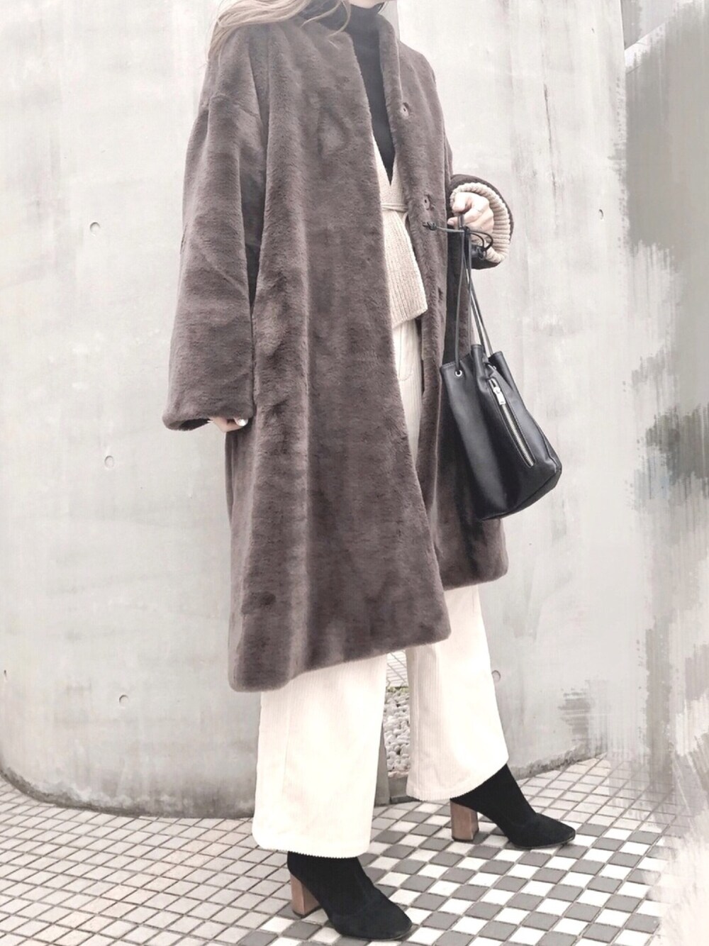 Moeのその他アウター「NO-COLLAR FUR COAT」を使ったコーディネート