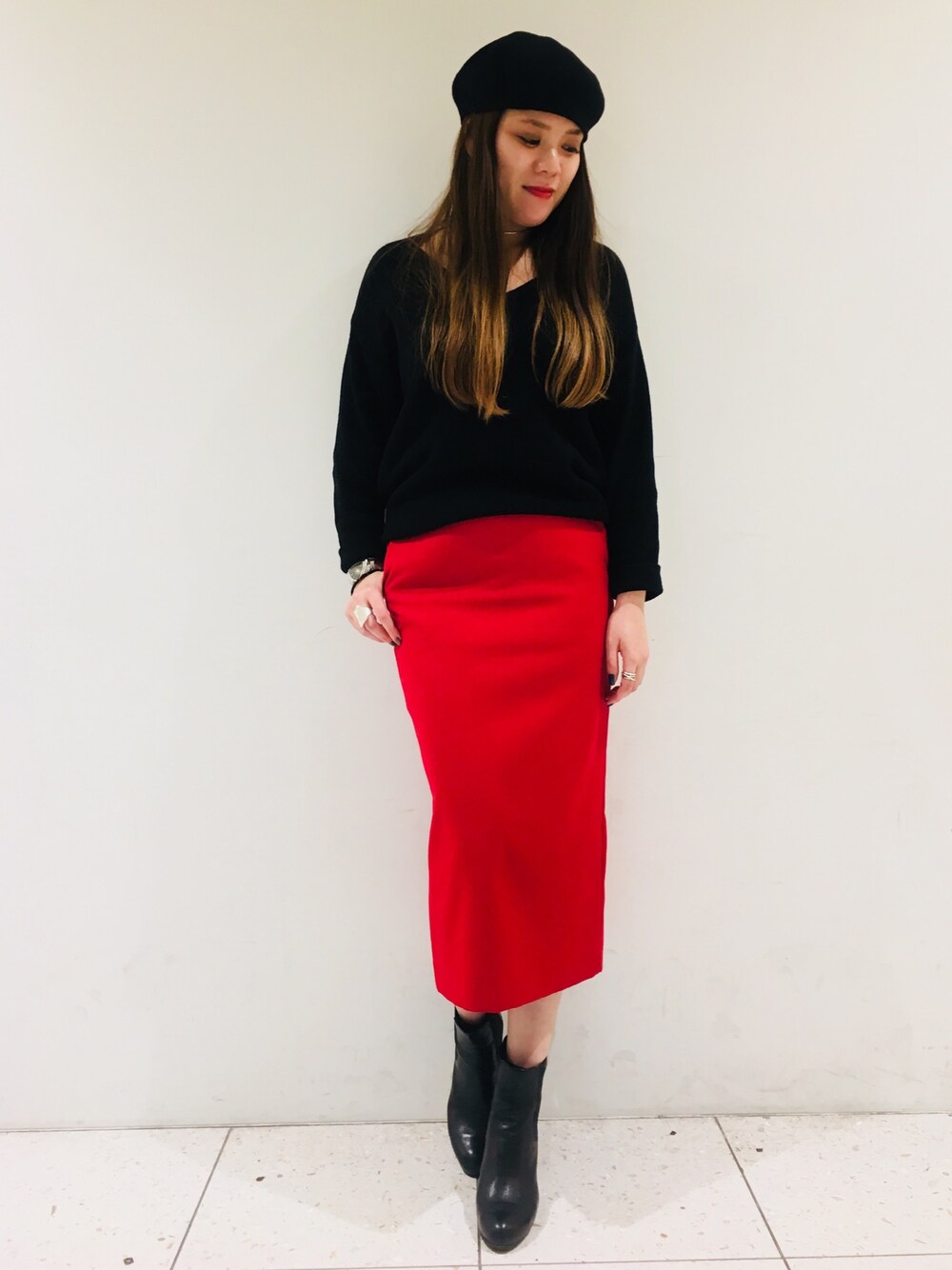 いつもいいね、お気に入り、フォローありがとうございます😋 大好きな赤と黒♠️♥️♣️♦️ このニット、何度か登場してますが 首周りすっきりで肌触りふんわり❤️ 肩が張っているわたしでもキレイに着れます😻 大分寒くなりましたね🌬🌬 週末のお出かけはあったかくしてくださいね⛄️🌞
