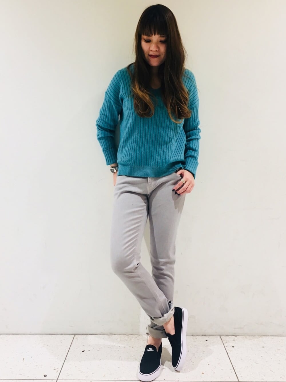いつもいいね、お気に入り、フォローありがとうございます😄 気になる気になるカラーアイテム💙 グレーとの色合わせが好きなんです😍 黒ばっかり着てるのよくないですね🙀🙀 ヤヌークのウール混すっごくはき心地いいです🙆🏻