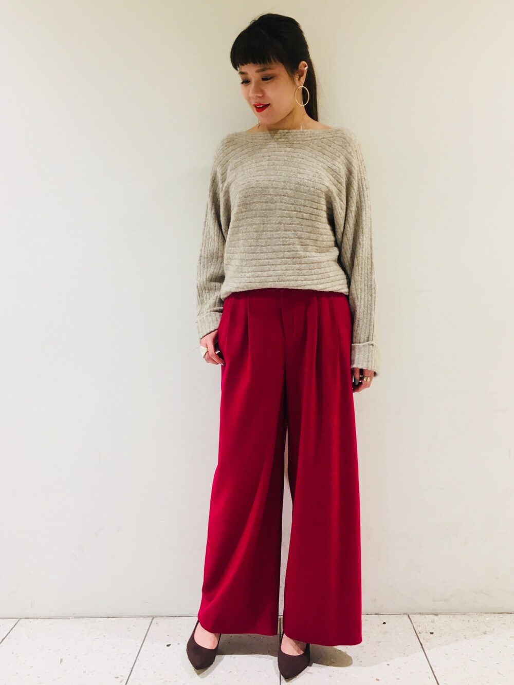 moeのニット/セーター「YAK混ワイドリブドルマンニット」を使ったコーディネート