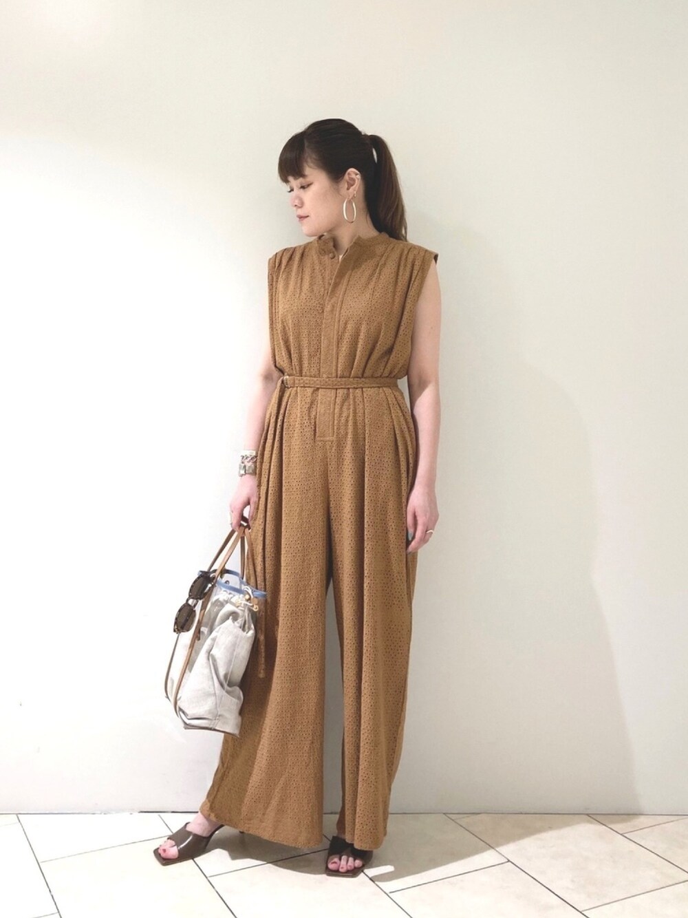 1枚で決まる! オールインワン👗✨ ランチでも夜遊びでもどこへでもいけそう😋🙌 ボリュームが出るので、共地のベルトをきゅっと絞るのがポイントです◎