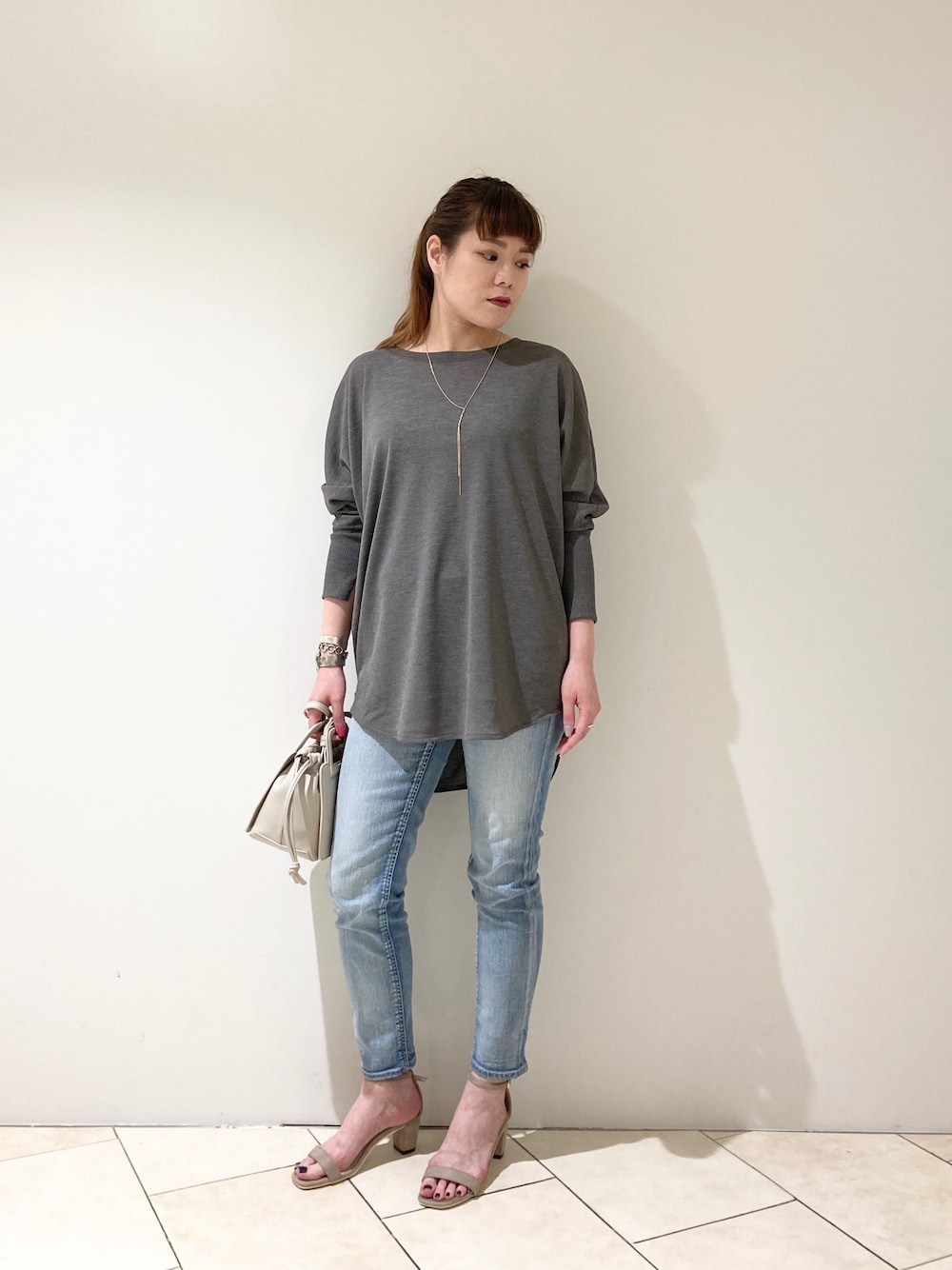 大人カジュアル+シンプルコーデ🙌 長めのカノコカットソーに細身デニム、 露出多めのサンダルで 極々シンプルに無駄のないスタイリング✨ 毎日着たい楽チン且つ洗練コーデです◎
