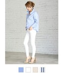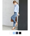 MOERYのデニムパンツ「MOERY ORIGINAL(モエリーオリジナル)裾スリットスキニーパンツ」を使ったコーディネート