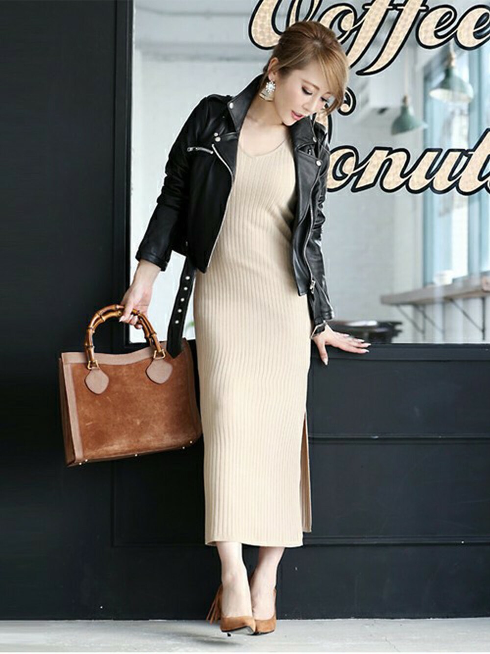 MOERYのライダースジャケット「Rocotta(ロコッタ) ラムレザーライダースジャケット」を使ったコーディネート