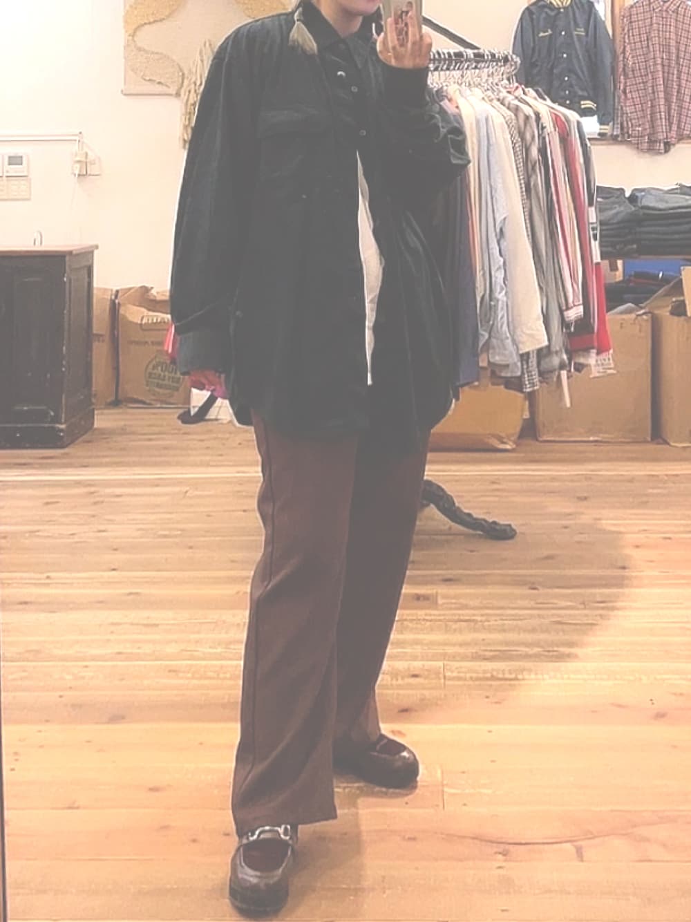 Wranglerのランチャーパンツは裾がフレアになってるから脚長効果抜群🤍