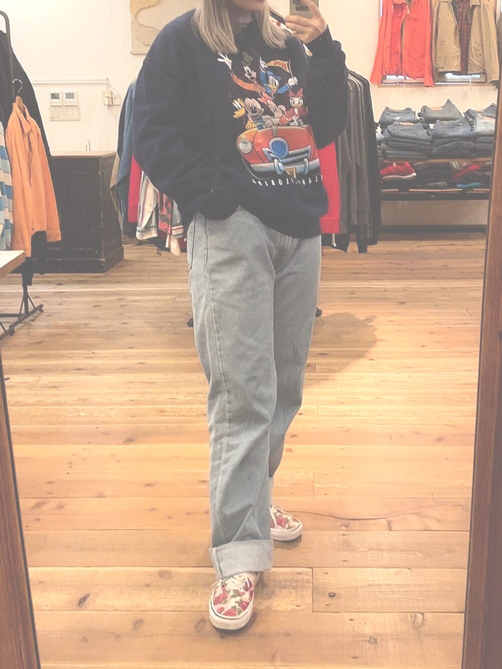 古着感強めカジュアルコーデ💟🥺 ディズニーのスウェットが可愛過ぎる🤦‍♀️🤦‍♀️