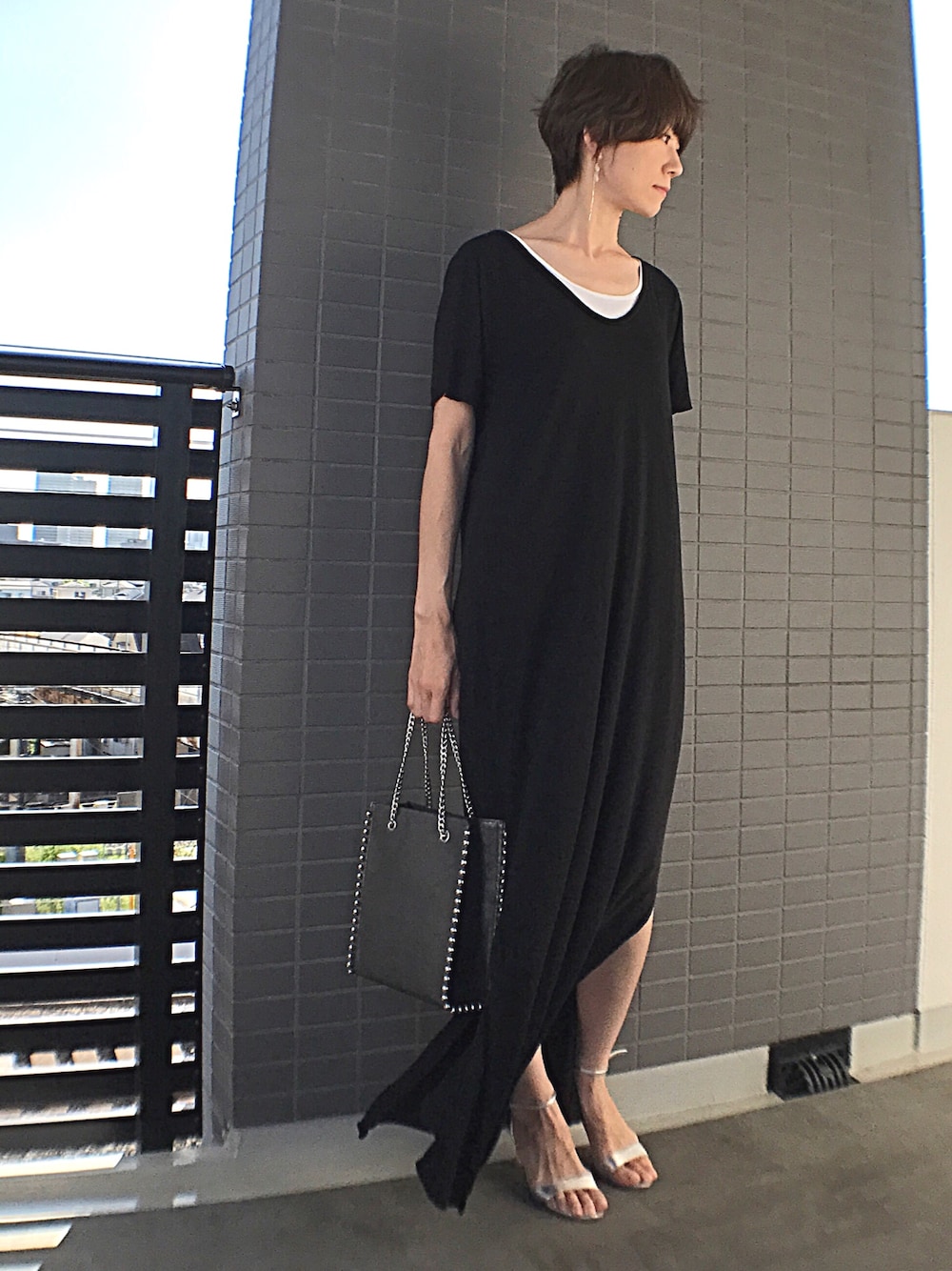 はい今日も出勤です! 頑張りましょう。 何だかあつーくなってしまったので、真夏に活躍のワンピが登場。 リゾートっぽくならないように、小物はシルバーで統一です。