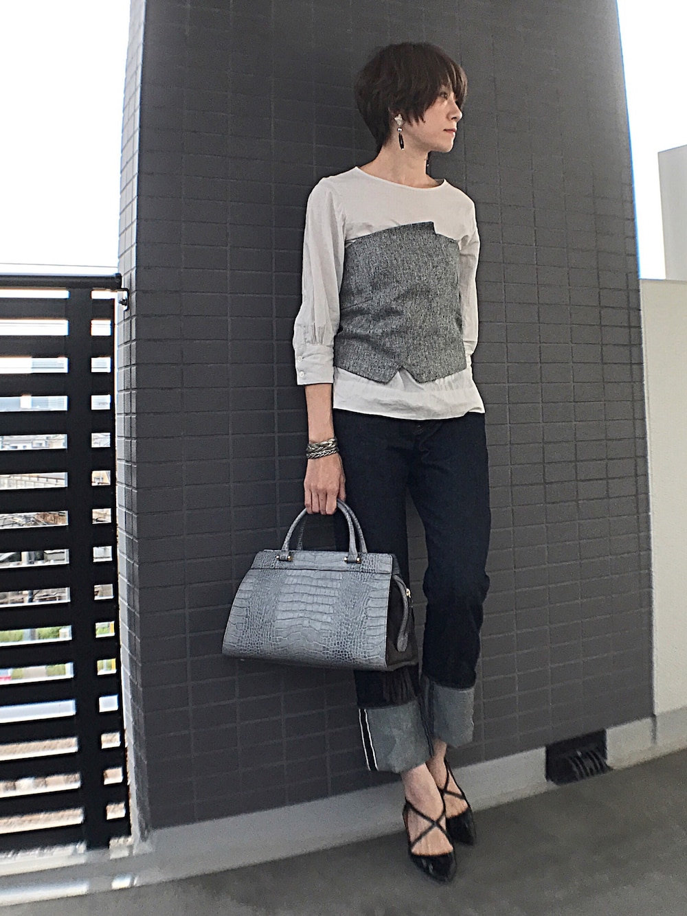 メンズっぽいヘリンボーンのビスチェで 甘さが丁度いい感じになりました(*ˊ˘ˋ*)