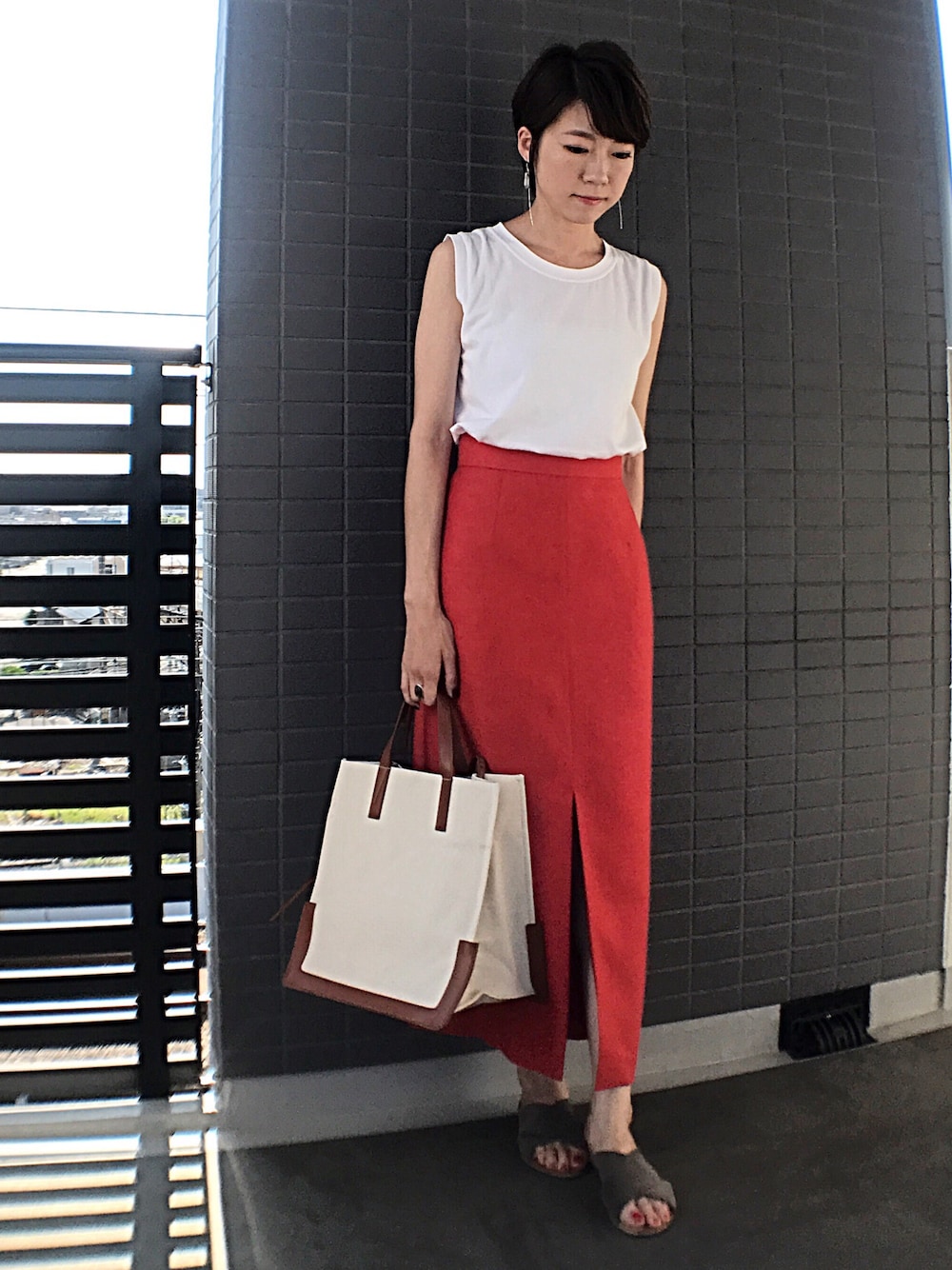 白タンク×オレンジスカート スカートが主役の日。
