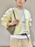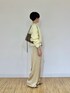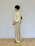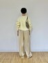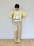 卵のようなイエローが可愛いハンドニットカーディガン💛 全体的に淡い色でまとめて優しい印象に仕上げました。 ぼんやりしないように、ベルトとレオパ柄のパンプスでアクセント。