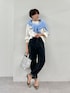ファーニットの新色! 綺麗なサックスブルーが顔映りを明るくしてくれます✨ 差し色として肩がけにするだけでもコーデが華やかになります。 とっても軽くて柔らかく、暖かいニットです。 インナーに重ねたのはPAUSEロンT。 襟、袖、裾からチラ見せして、オシャレ小技としてはもちろん、少し汗をかいてしまってもこれが洗えるから安心! ボトムはドローイングナンバーズのコーデュロイパンツ。 絶妙かカラーがオシャレです。 ややテーパードになっていて、今回は少しロールアップしてみました。