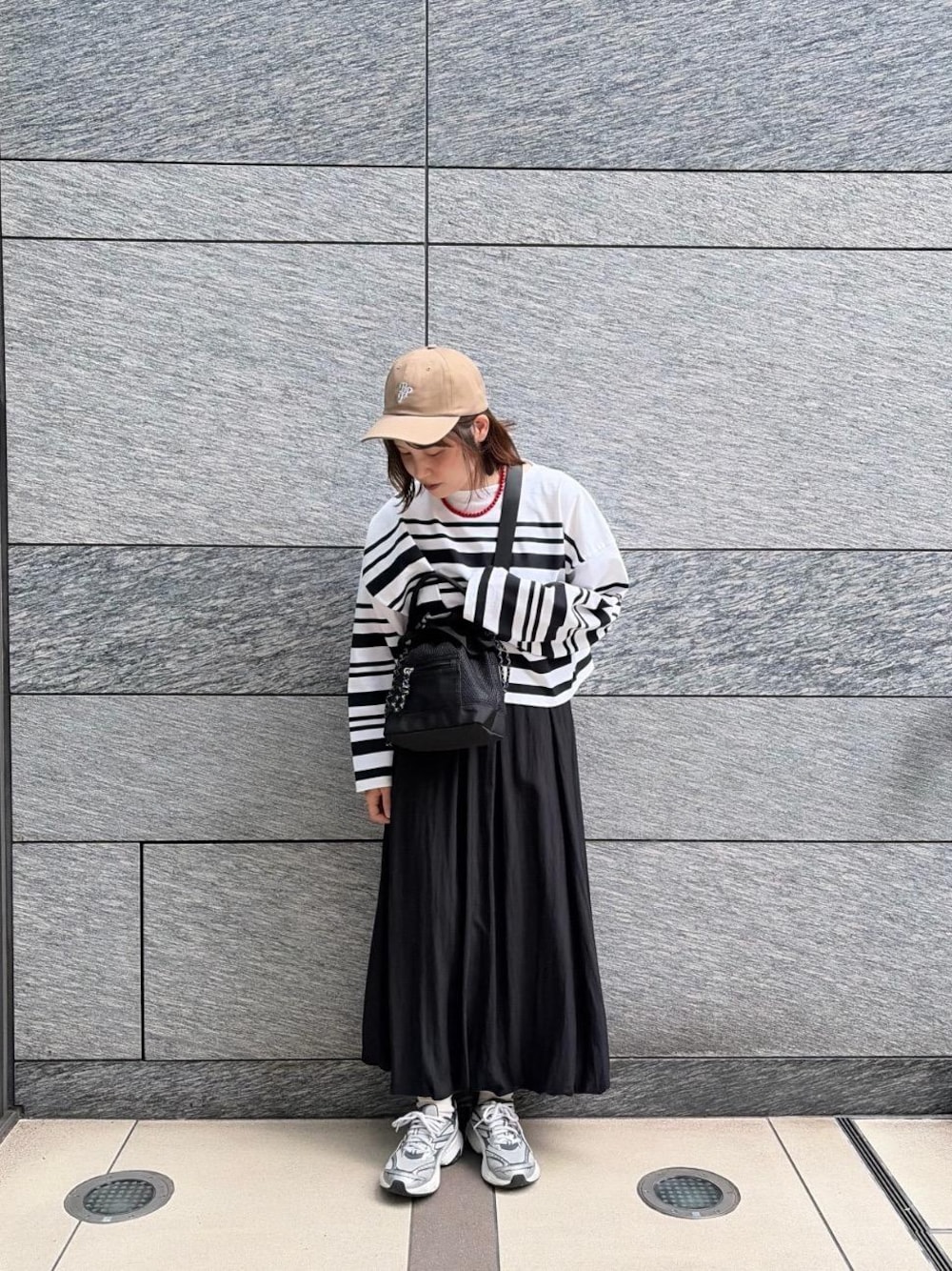 30代前半 / 164cm / 骨格ストレート / 普段サイズM~L / 着用サイズ38 /IG:_le_aka 【ルミノアボーダーショートカットソー】 サイズ感:ゆったり 素材感:綿100% 着用感:袖も長めで◎ショート丈なのでレイヤードスタイルやスカート合わせにピッタリです 【バルーンスカート】 サイズ感:ゆったり 素材感:レーヨン/ナイロン 着用感:ウエストもゴムで全体的にゆったりしてますが、バルーンなのにボリュームが出過ぎないシルエットで綺麗に着ていただけます!