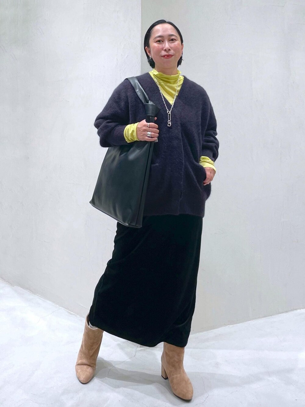 azuki(SALON adam et rope' 天王寺MIO)のスカート「ベロアロングスリットタイトスカート【セットアップ対応・洗える】」を使ったコーディネート
