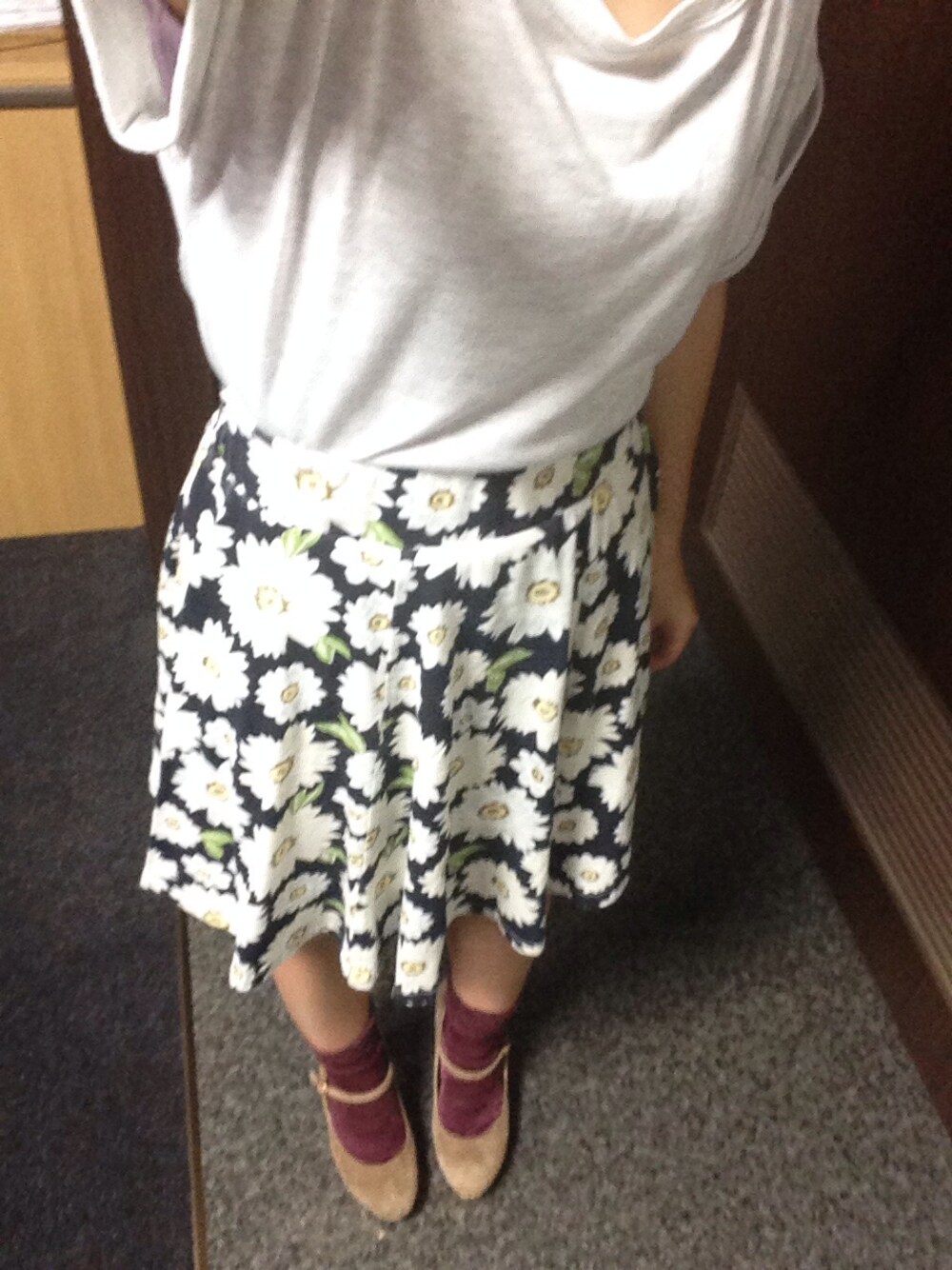 mofuのスカート「花柄プリントスカート」を使ったコーディネート