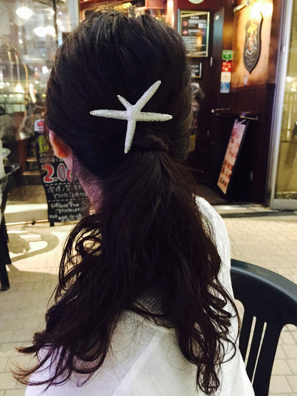 簡単すぎるヘアアレンジ ひとつに結んでヒトデをポン ヒトデモチーフ好き!