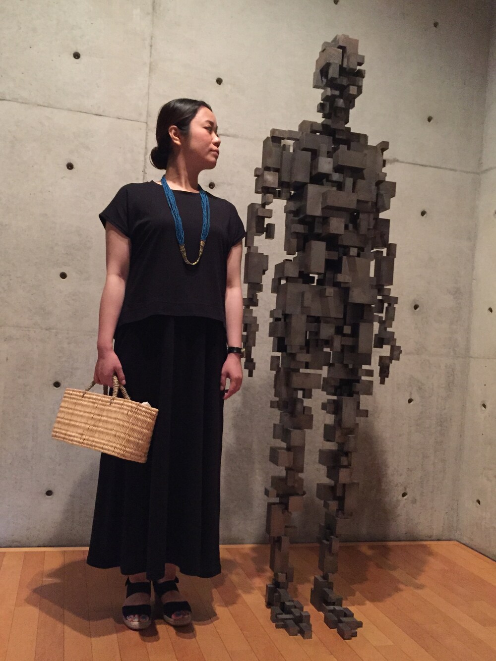 美術館が併設されたホテルで1泊。こんなオブジェ 素敵です。 普段あまり着ない黒のワンピで夜ごはん。
