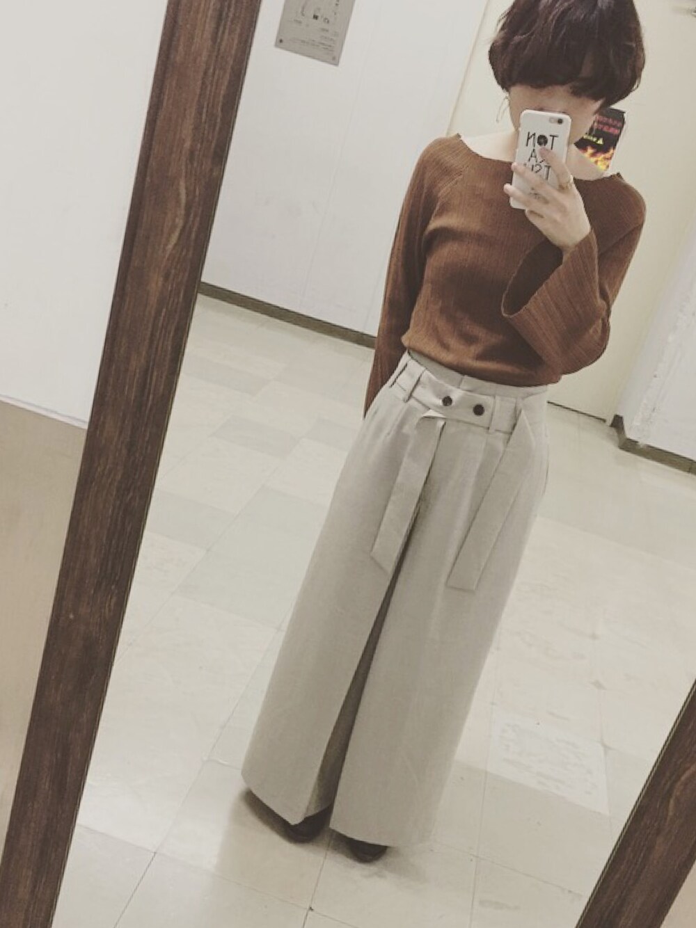SSかわいい。ブラウントーンで合わせるのが柔らかくて好きです。ボタンがアクセントなワイドパンツはかなり履きやすい