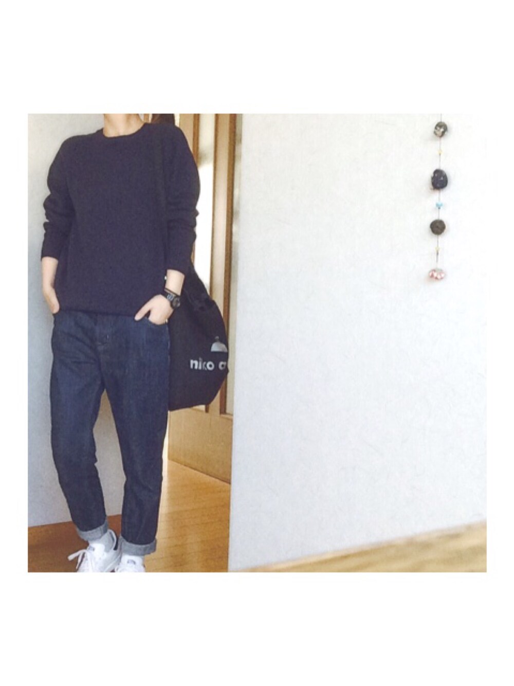 ネイビー✖️ネイビー 去年のユニクロのニットが 半値以下で売ってあったので即買い。 最近やっと秋らしくなってきて 今季初ニットが着られました。
