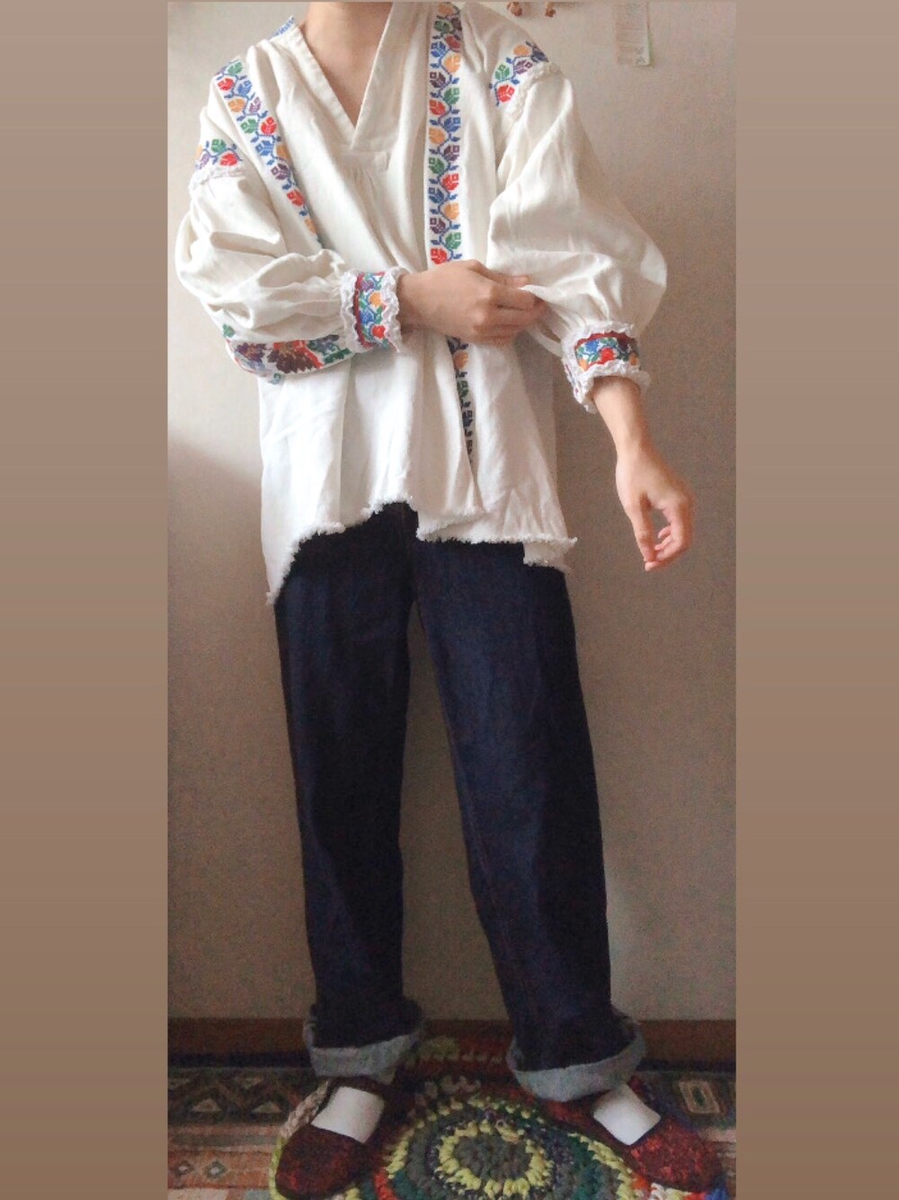 白い服は白飛びして撮るのが難しい事を知った2日目。 ブラウスの可愛さが全然伝わらないし デニムは切りっぱなしか深めに1つ折り出来る方が可愛いなぁ。。 shoes used