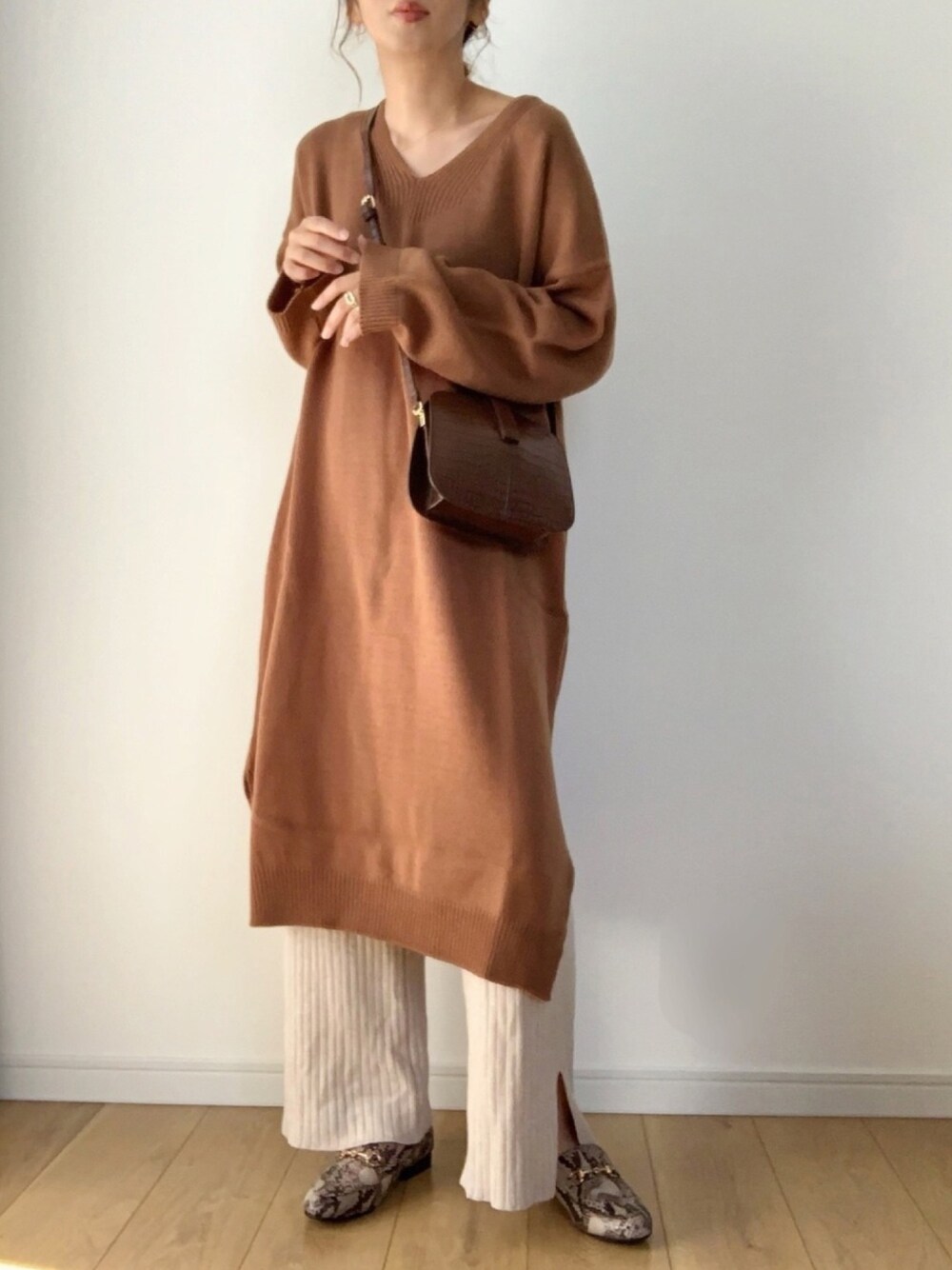 maiko のワンピース「Vネックニットワンピース」を使ったコーディネート