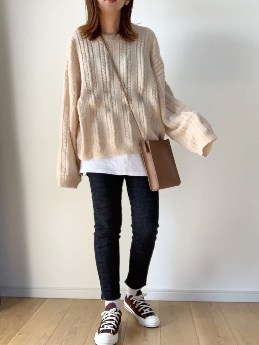 maiko のニット/セーター「クリームカラーケーブルニット」を使ったコーディネート