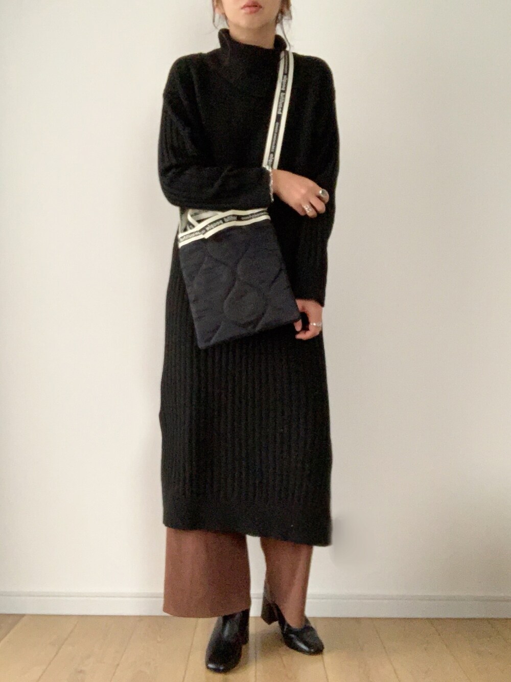 maiko のワンピース「リブニット・オフタートルONE PIECE DRESS」を使ったコーディネート