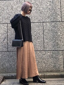 maiko のニット/セーター「ケーブル柄ドロップショルダータートルネックニットプルオーバー」を使ったコーディネート