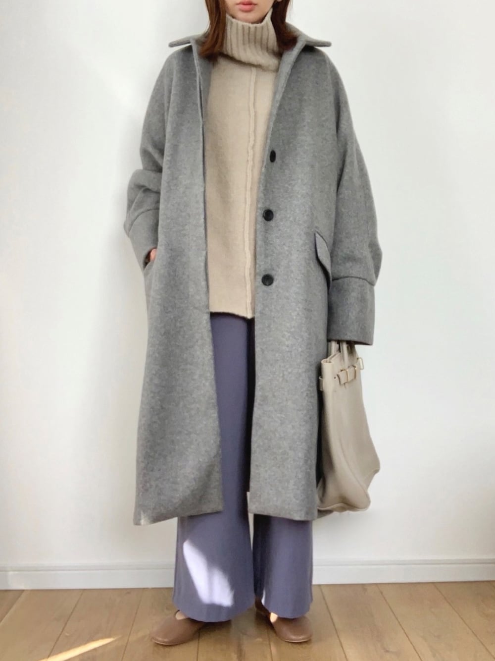 たっぷりオーバーサイズなロングコートが可愛いすぎます☺︎ グレーコーデに差し色はくすみブルーにしました。 見て下さりありがとうございます。