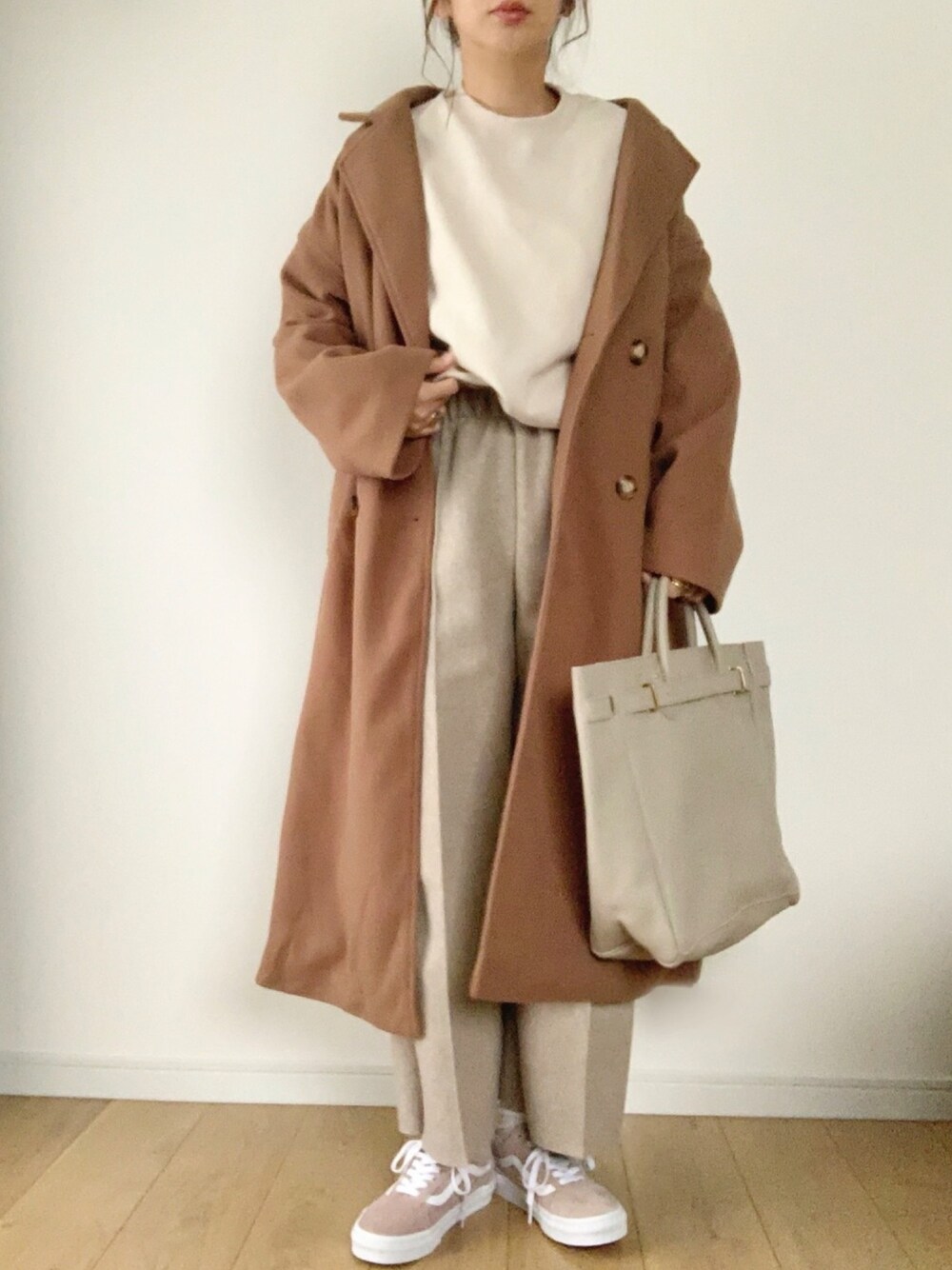 モカのコート以外は明るめベージュのワントーンにしました☺︎ コートはzozotownでクーポン出ています。 見て下さりありがとうございます。