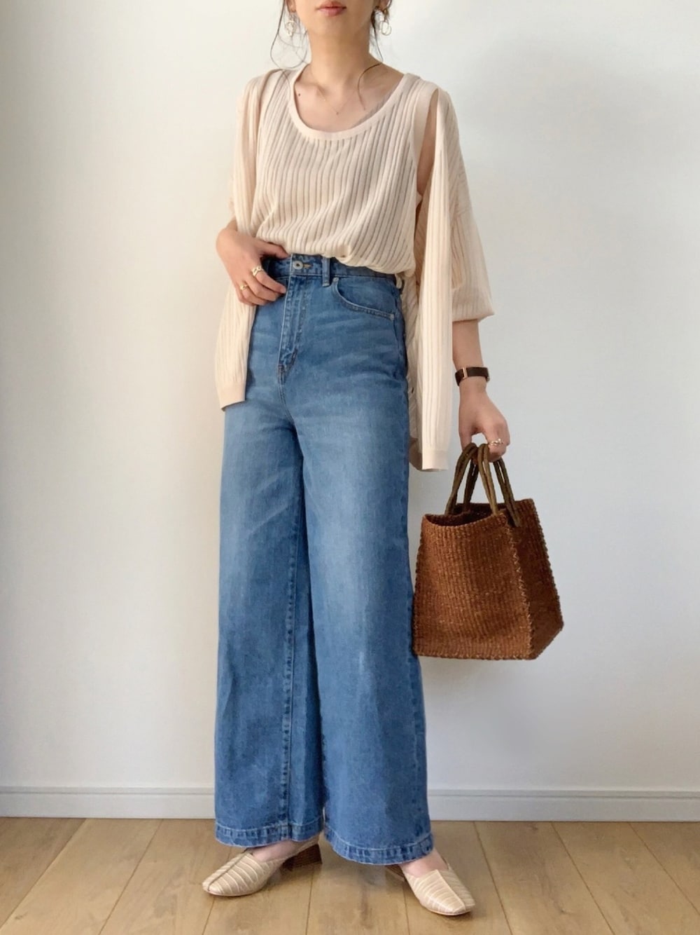 着まわしコーデです。 ワイドデニムは柔らかくて履きやすいです。 春だからか、デニムを履きたい日が多くなりました。 見て下さりありがとうございます☺︎