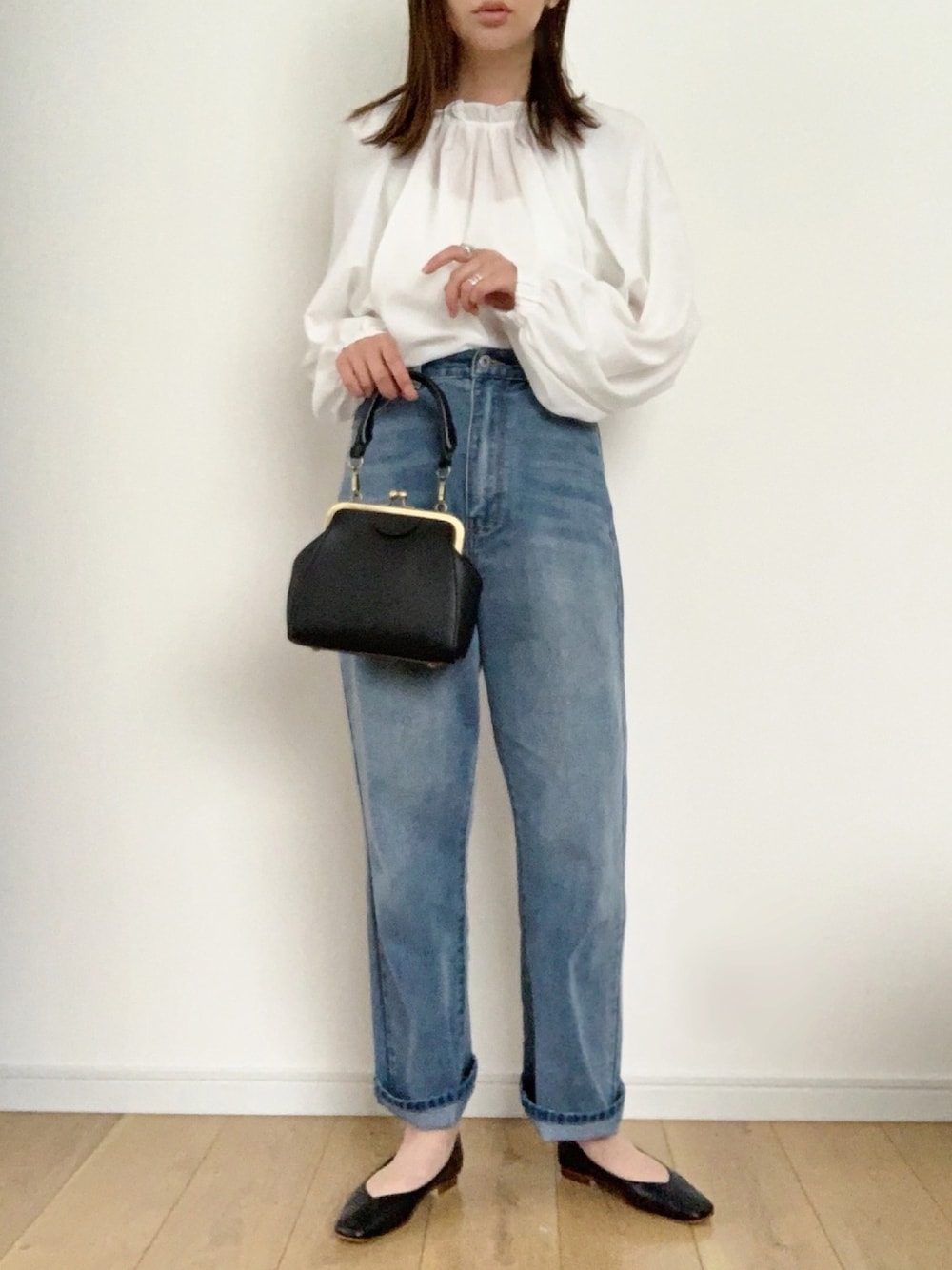 お気に入りのGUのブラウスにデニムを合わせました☺︎ このデニム、プチプラなのに形が良くてすごく良いです! 今日クーポン出ていたので、気になった方は見てみて下さい☺︎ 見て下さりありがとうございます。