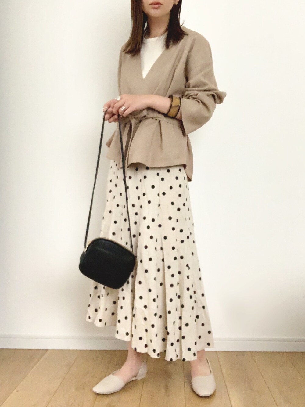 保育園の入園式用に買ったショートブルゾンが可愛いくて、ドットスカートと合わせてみました☺︎ 入園式にはオールインワンと着る予定です。 このスカートも形が良くて痩せ見えします! 見て下さりありがとうございます。