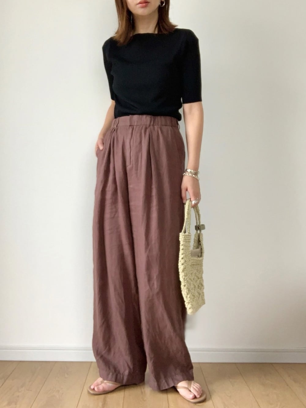 シンプル。 濃いめ同士の色の組み合わせも そろそろ気になりだしました。 ワイドパンツはゆったりした履き心地で ストレスフリーです。 見て下さりありがとうございます。