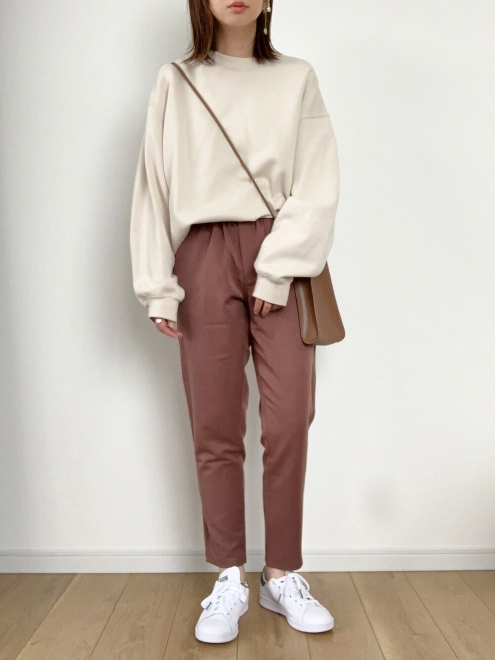 スウェットにカラーパンツの シンプルコーデです☺︎ パンツはハイウエストでインして履いても 普通に履いても良いデザインなので 嬉しいです。 今日はクーポンも出ています。 見て下さりありがとうございます。