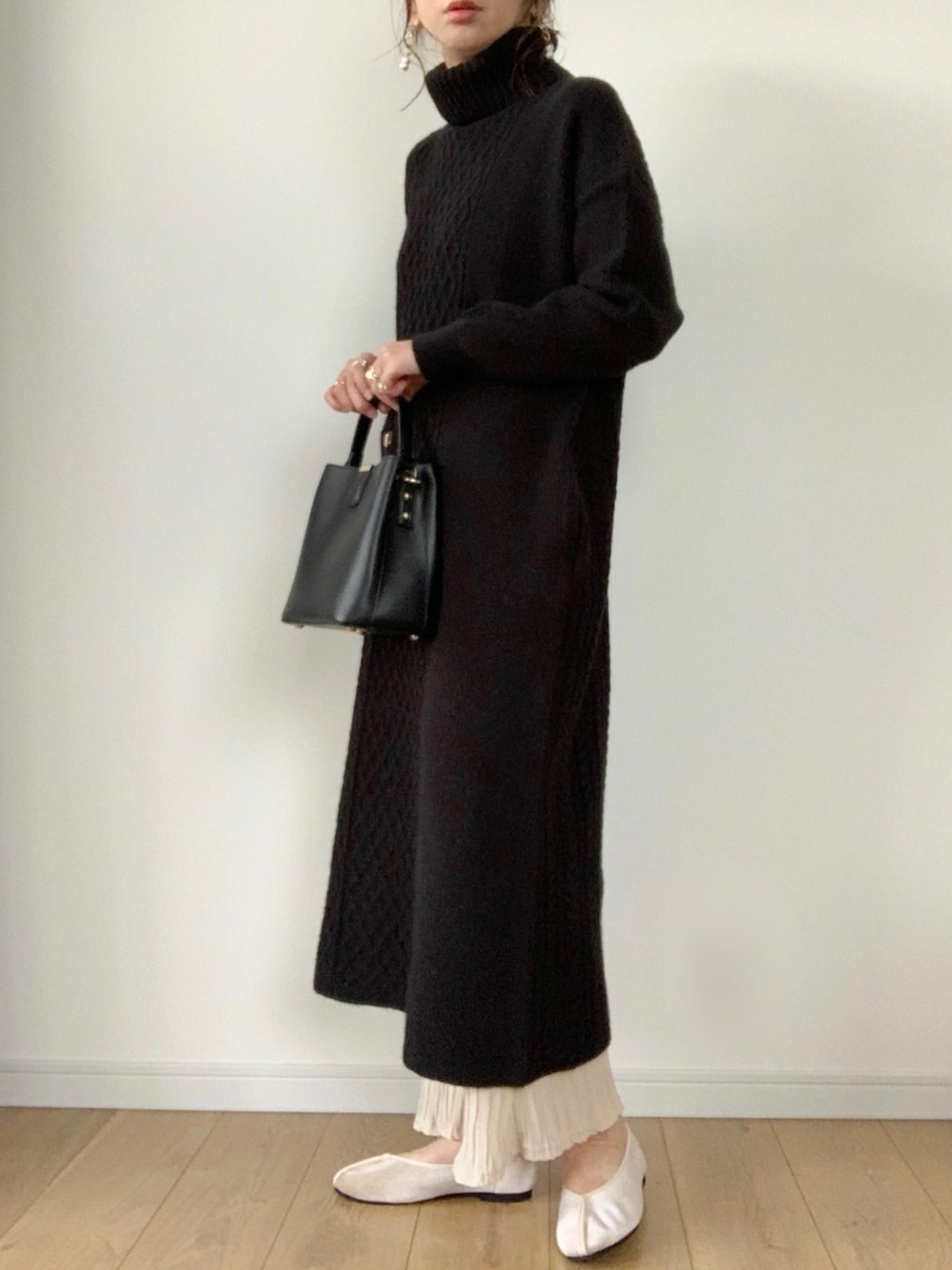 maiko のワンピース「アシンメトリー タートルニットワンピース」を使ったコーディネート