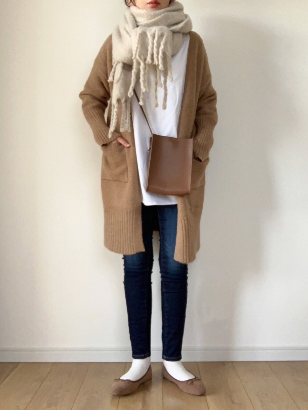 あったかカーディガンコーデです☺︎ きゅっと密着する感じで着膨れしないので アウターの下にも着れる感じです。 UNIQLOの人気のTシャツも 使いやすくてオススメです。 カーディガンは今日クーポンが 出ていました。 気になった方は見てみて下さい☺︎ 見て下さりありがとうございます。