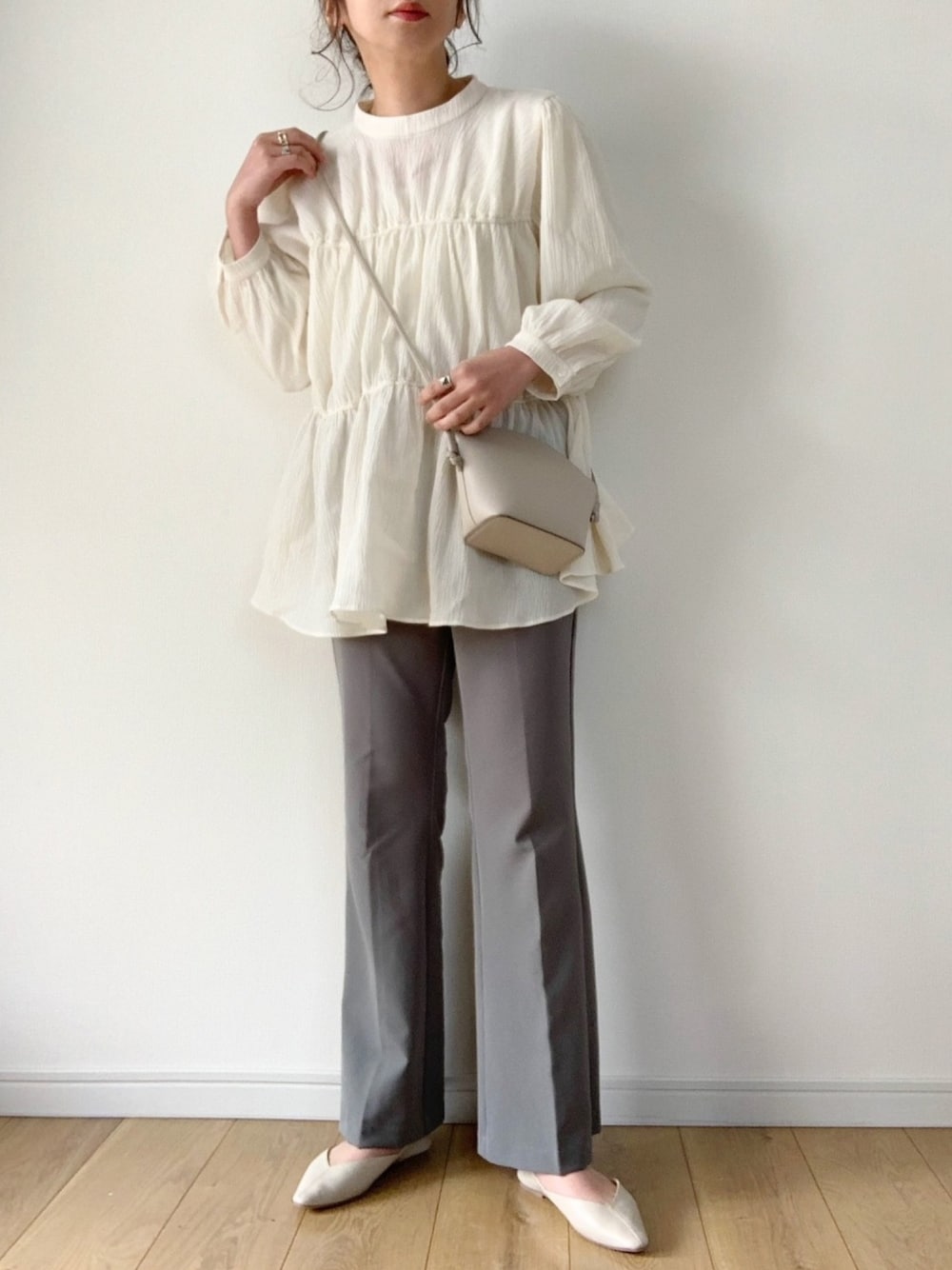 ティアードブラウス×フレアパンツの シンプルコーデです☺︎ ご覧下さりありがとうございます。