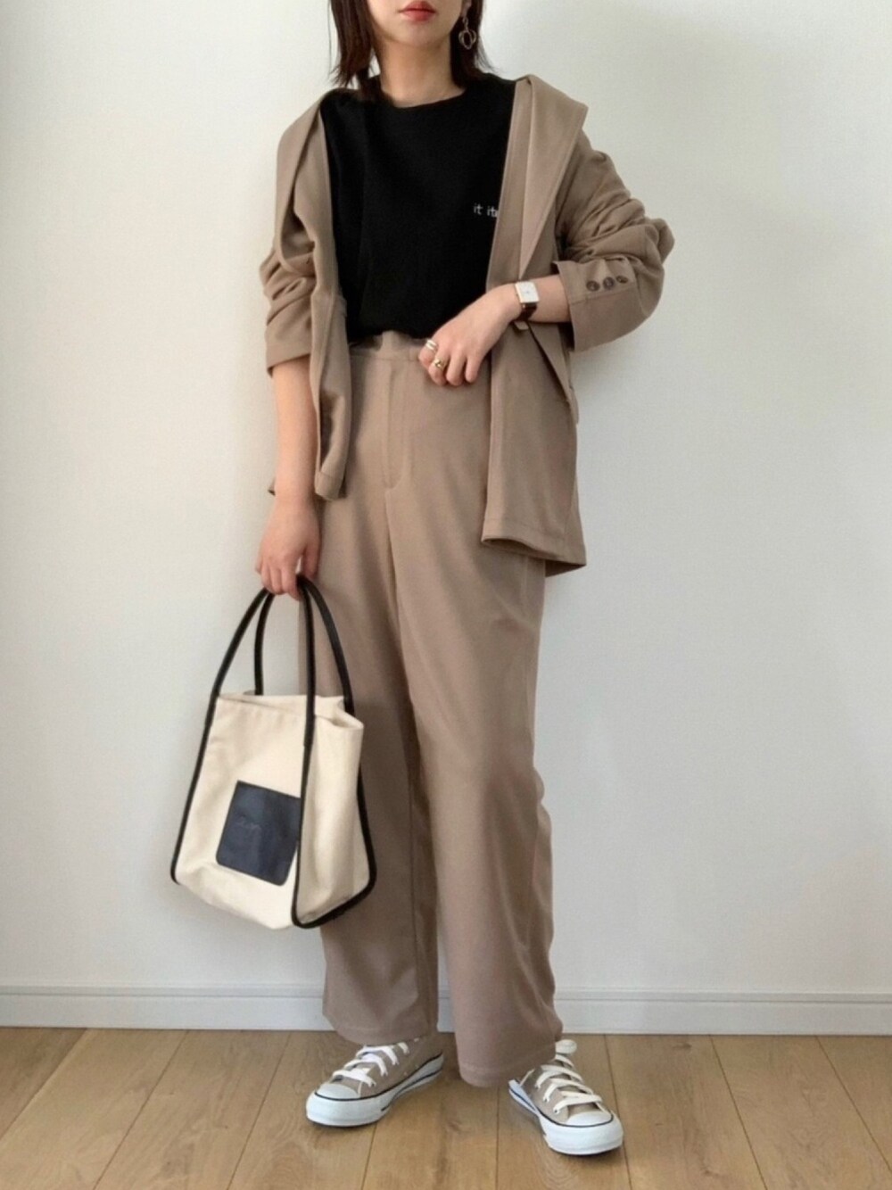 今日のタグのセットアップに合わせて 着まわしコーデです☺︎ メンズのセットアップなので 黒Tシャツで更にメンズライクに。 ご覧下さりありがとうございました。