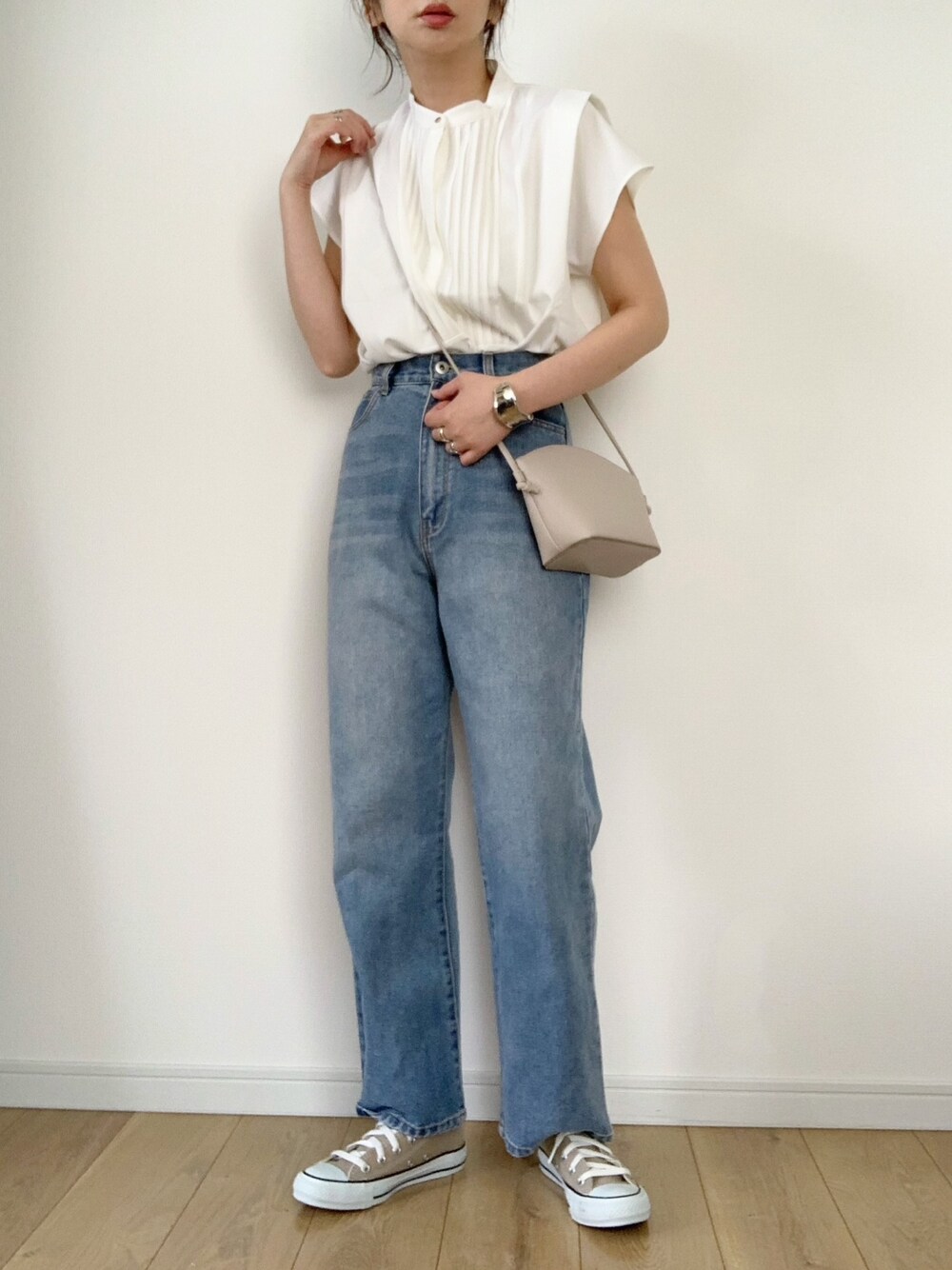 ブラウスにデニムのカジュアルコーデです☺︎ 足元はコンバースでカジュアル強めな ブラウスコーデでした。 ご覧下さりありがとうございました。