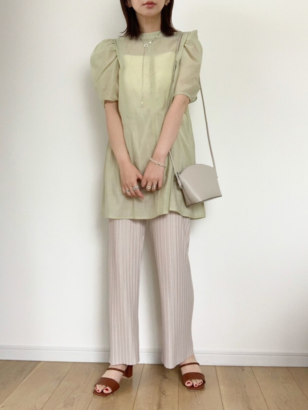 ガーリーなシアーブラウスは プリーツパンツでキレイめコーデに しました☺︎ ブラウスはmiiちゃんのコラボのものを 着用させて頂きました! 長めの着丈やデザインが大好きな 1枚です。 ご覧下さりありがとうございました。