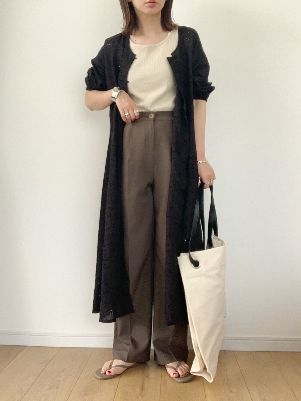 コットンレースワンピースを 羽織りにしました☺︎ ワンピースとして着ても 羽織っても良いワンピースは 重宝しますね。 ご覧下さりありがとうございました。