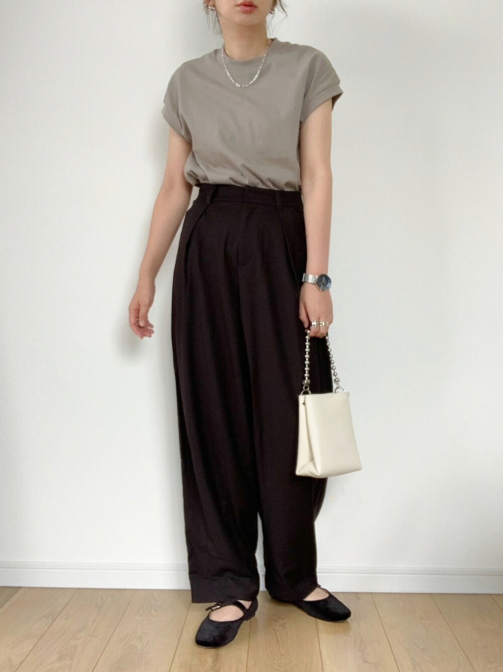 モノトーンコーデ☺︎ きれいめワイドパンツがお気に入り。 ご覧下さりありがとうございました。