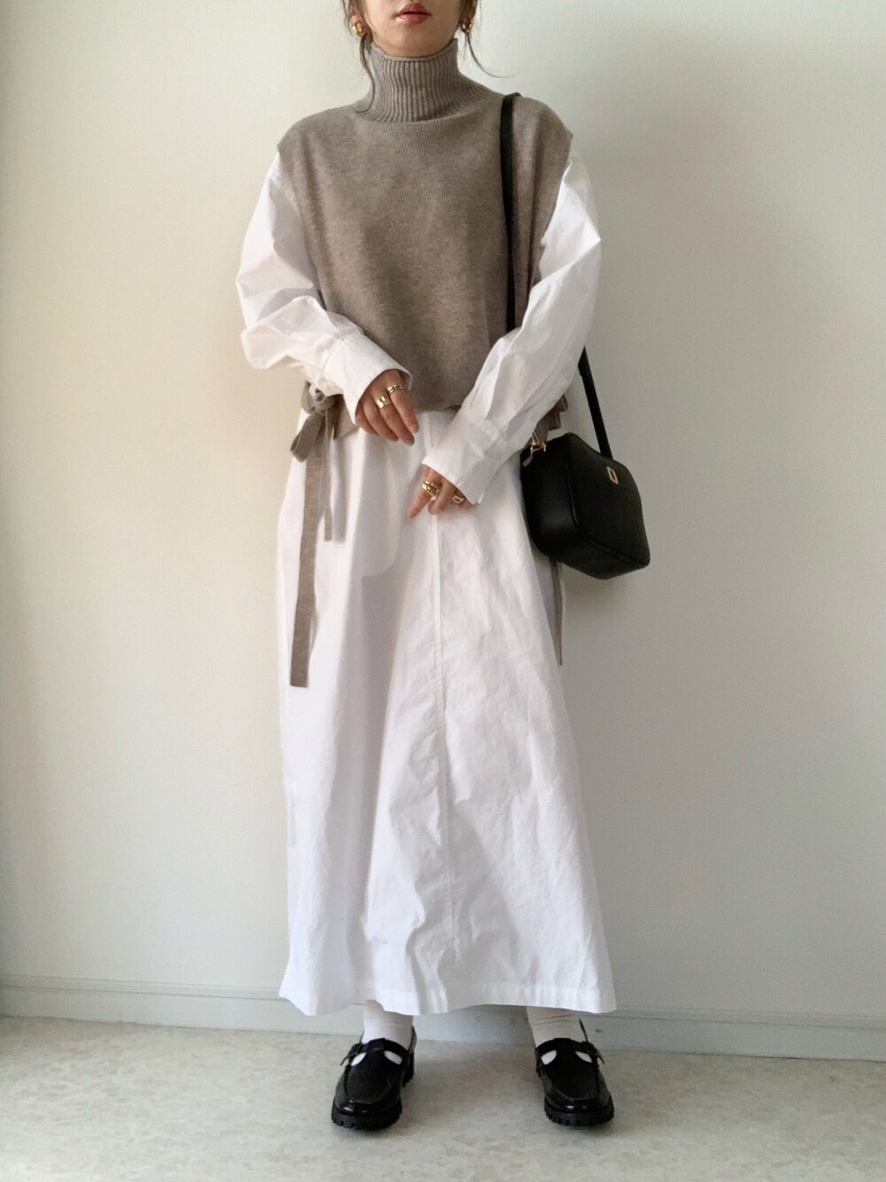 シャツワンピとベストの今着たい セットアイテムのコーデです。 白靴下にローファーでより秋らしく しました。 ご覧下さりありがとうございました🕊