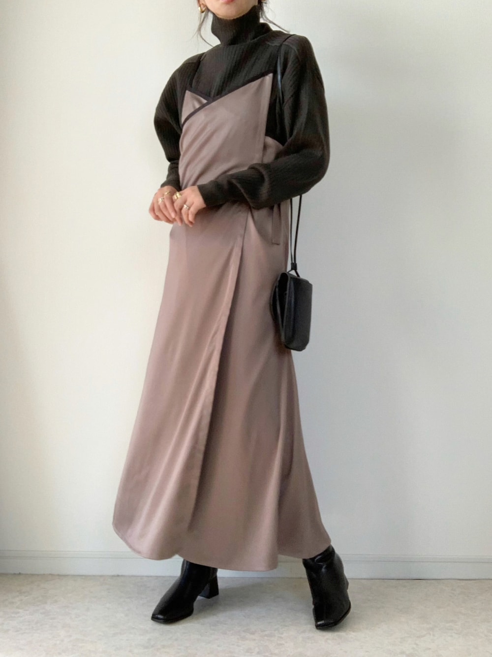 リブタートルネックにキャミワンピースを 合わせたコーデです☺︎ ご覧下さりありがとうございました。