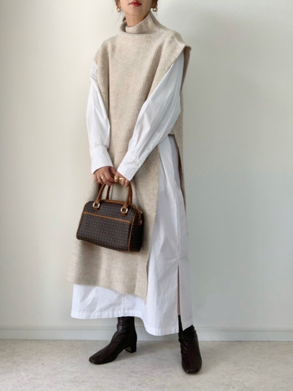 maiko のベスト「ハイネックロングニットベスト」を使ったコーディネート
