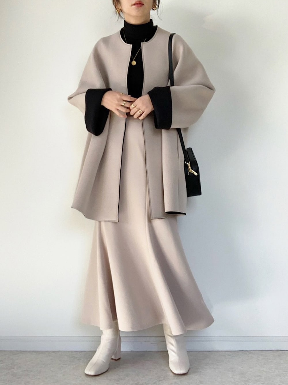 maiko のノーカラーコート「【web限定】ボンディングミドルコート」を使ったコーディネート