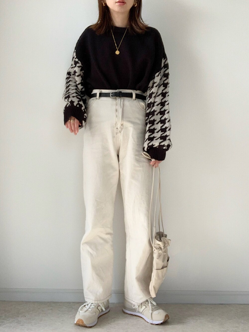 千鳥柄ニットの着まわしコーデです☺︎ モノトーンコーデが落ち着きます。 ご覧下さりありがとうございました。