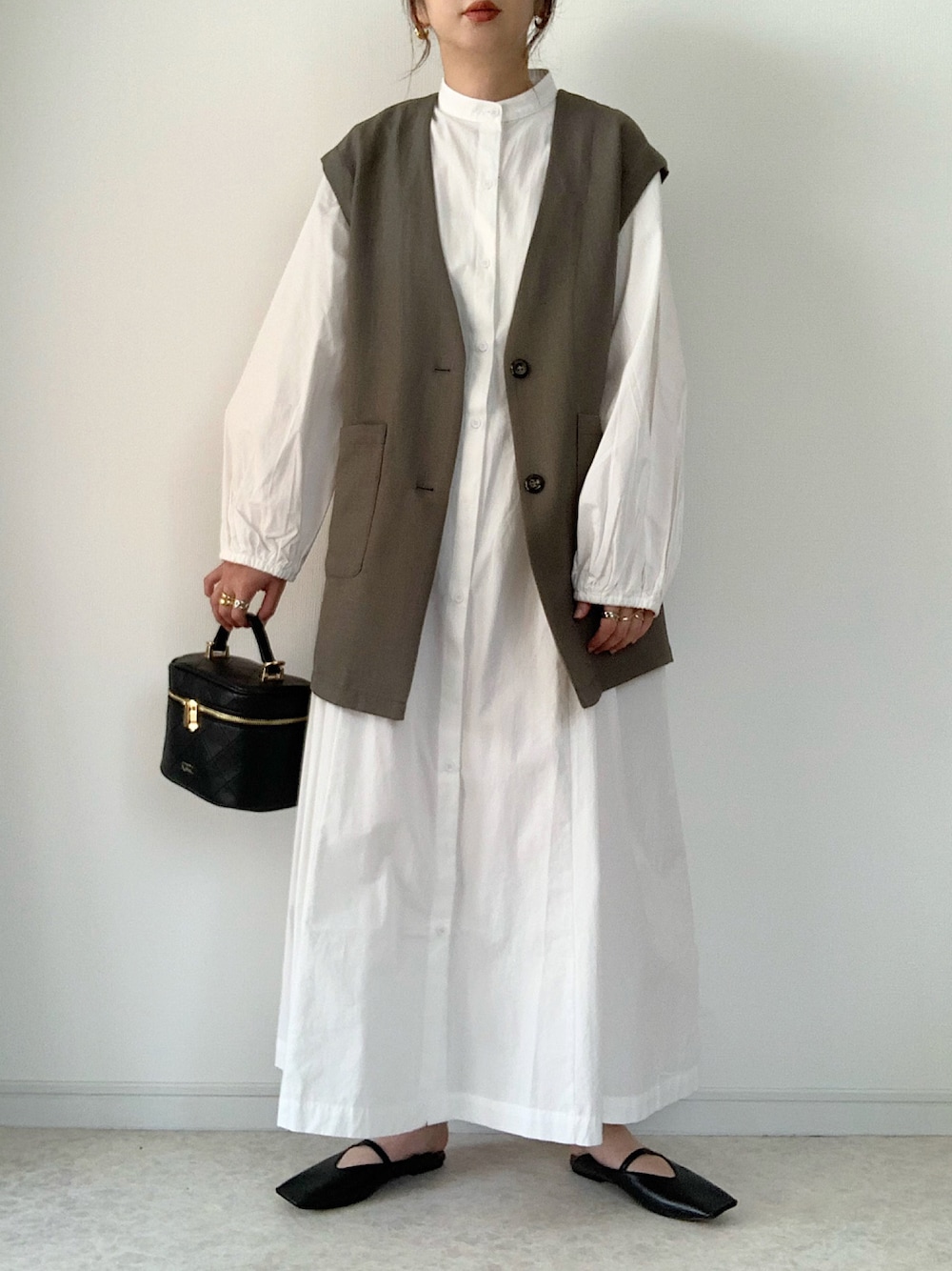 シャツワンピース×ジレのコーデです☺︎ 着丈が長めなジレは パンツコーデからワンピースまで 合わせやすくて重宝しています。 ご覧頂きありがとうございました。